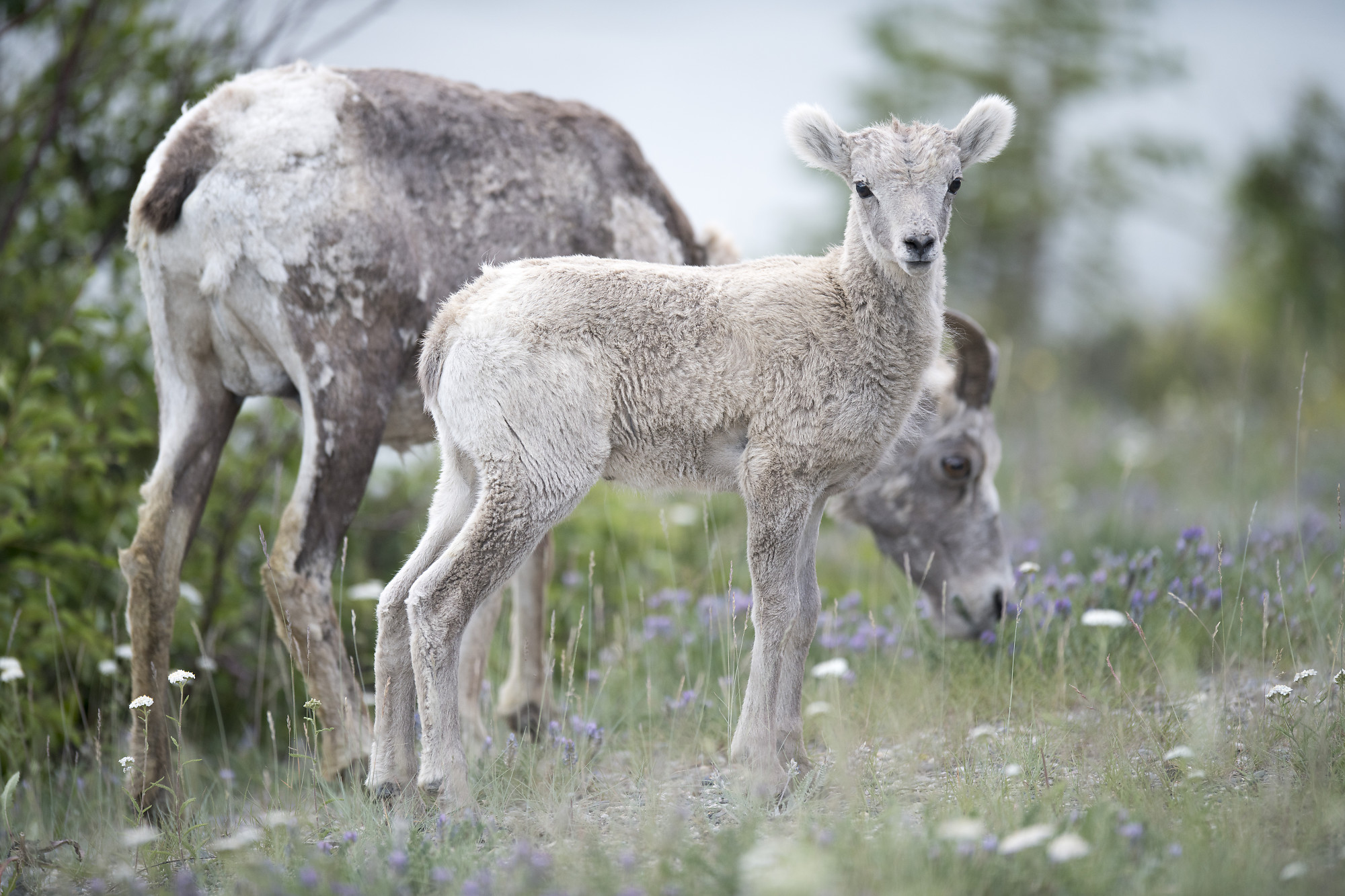 John Harvey Photo > Blogs for 2025 to 2005 > Banff Jasper Road Trip > Jasper > Young Bighorn Sheep With Mom Eating