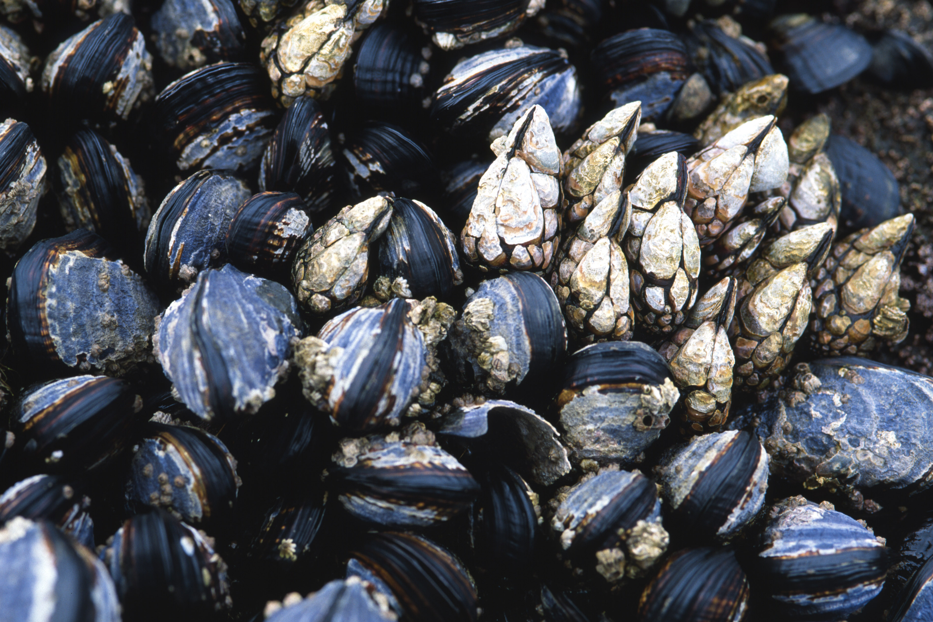 | Mytilus californianus (California mussel), Pollicipes polymerus (Goose Barnacle or Goose Neck Barnacle) |