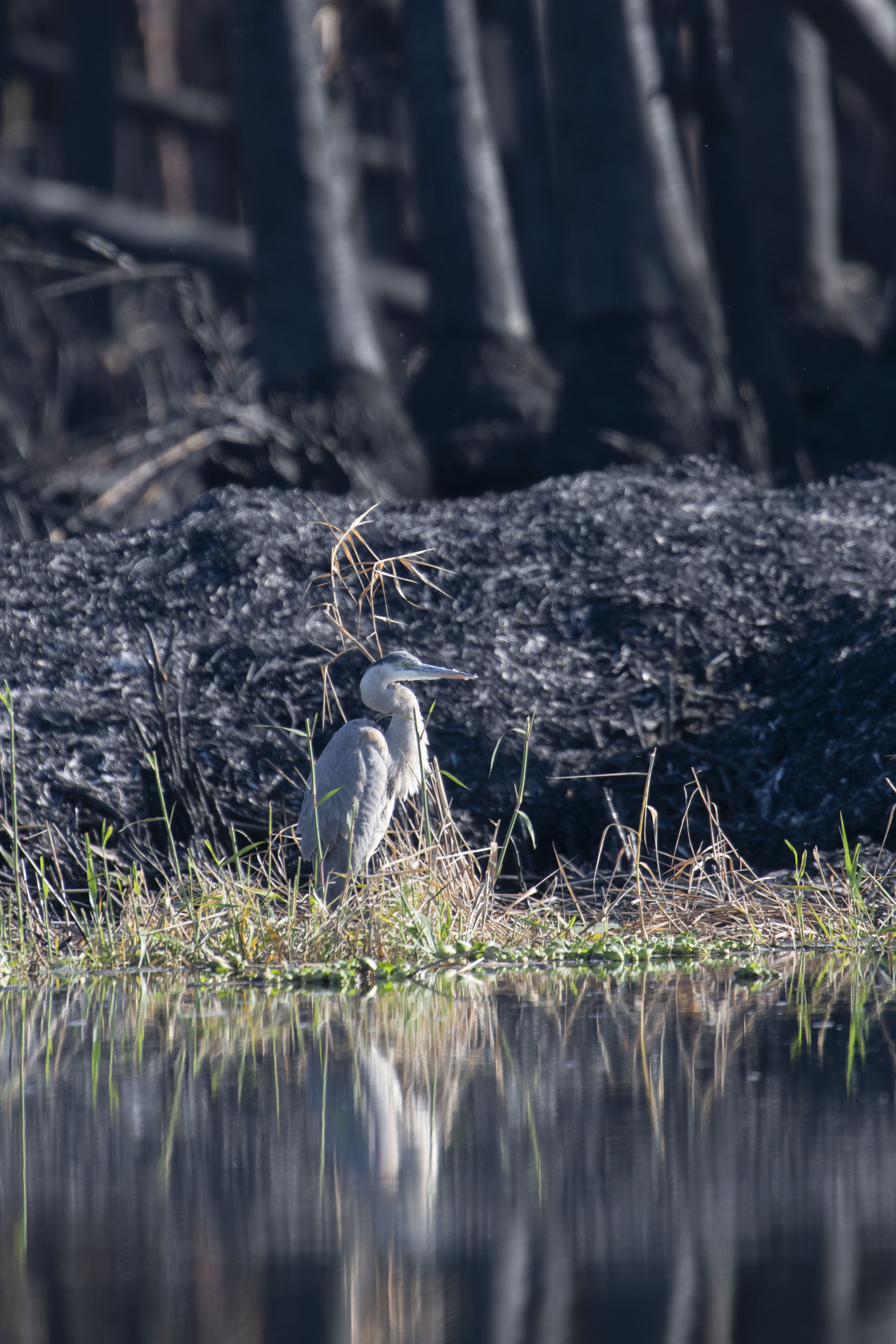 Great Blue Heron With Burnt Palm Trees