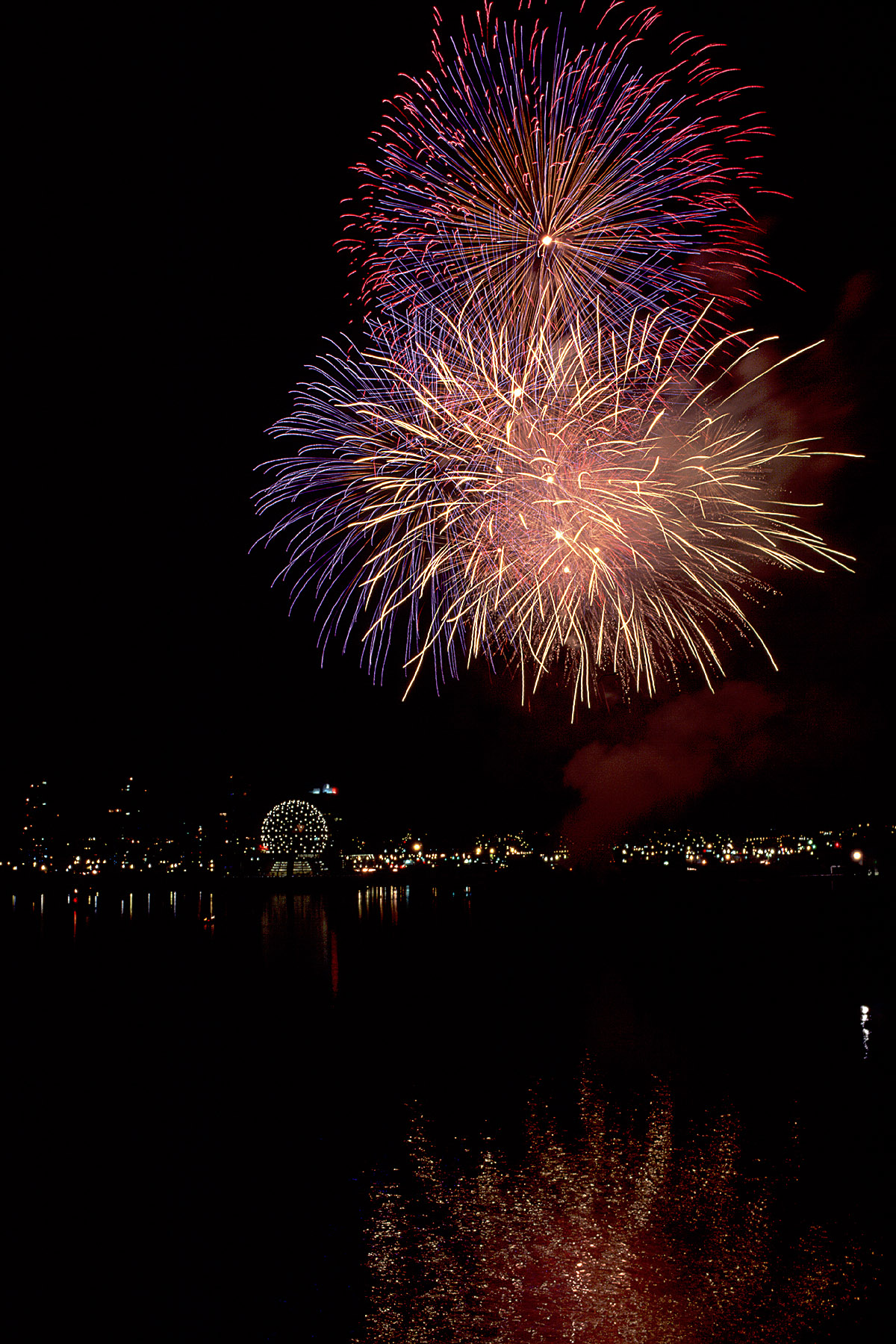 John Harvey Photo > John Harvey Photo - Fireworks in Vancouver > Fireworks Over False Creek (Science World)