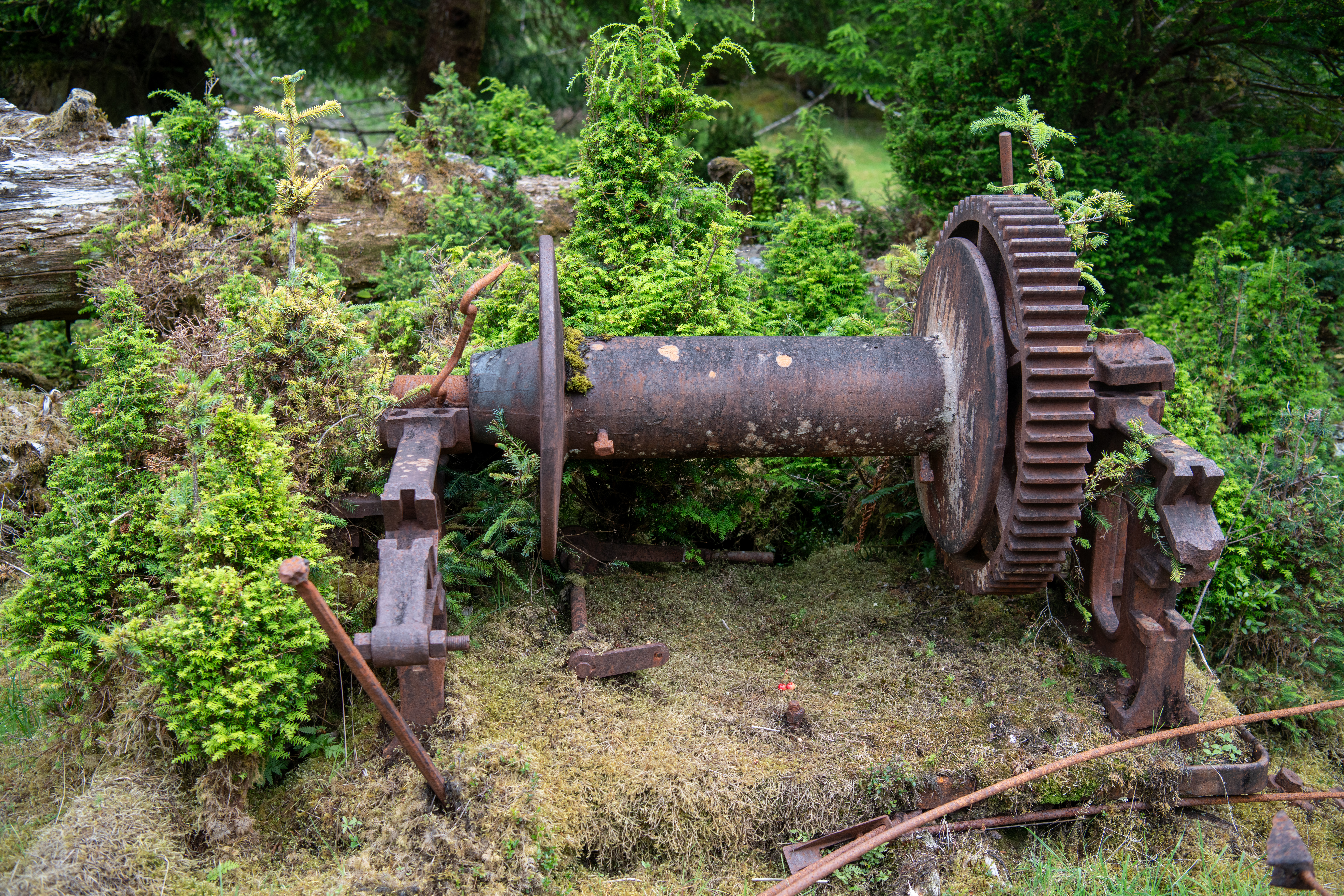 John Harvey Photo > Haida Gwaii > SGang Gwaay > Old Winch Being Grown Over