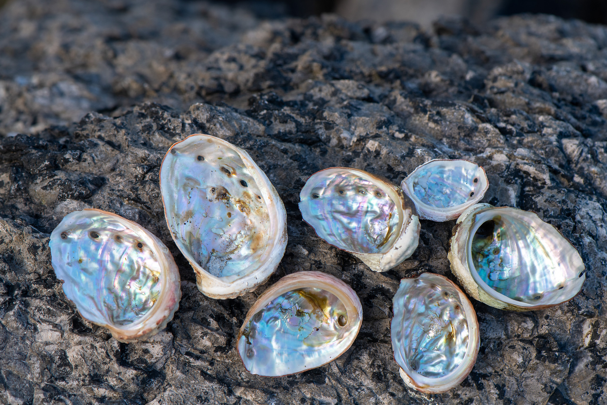 I don't think these are abalone harvested by people. I think the birds eat them and drop the shells.