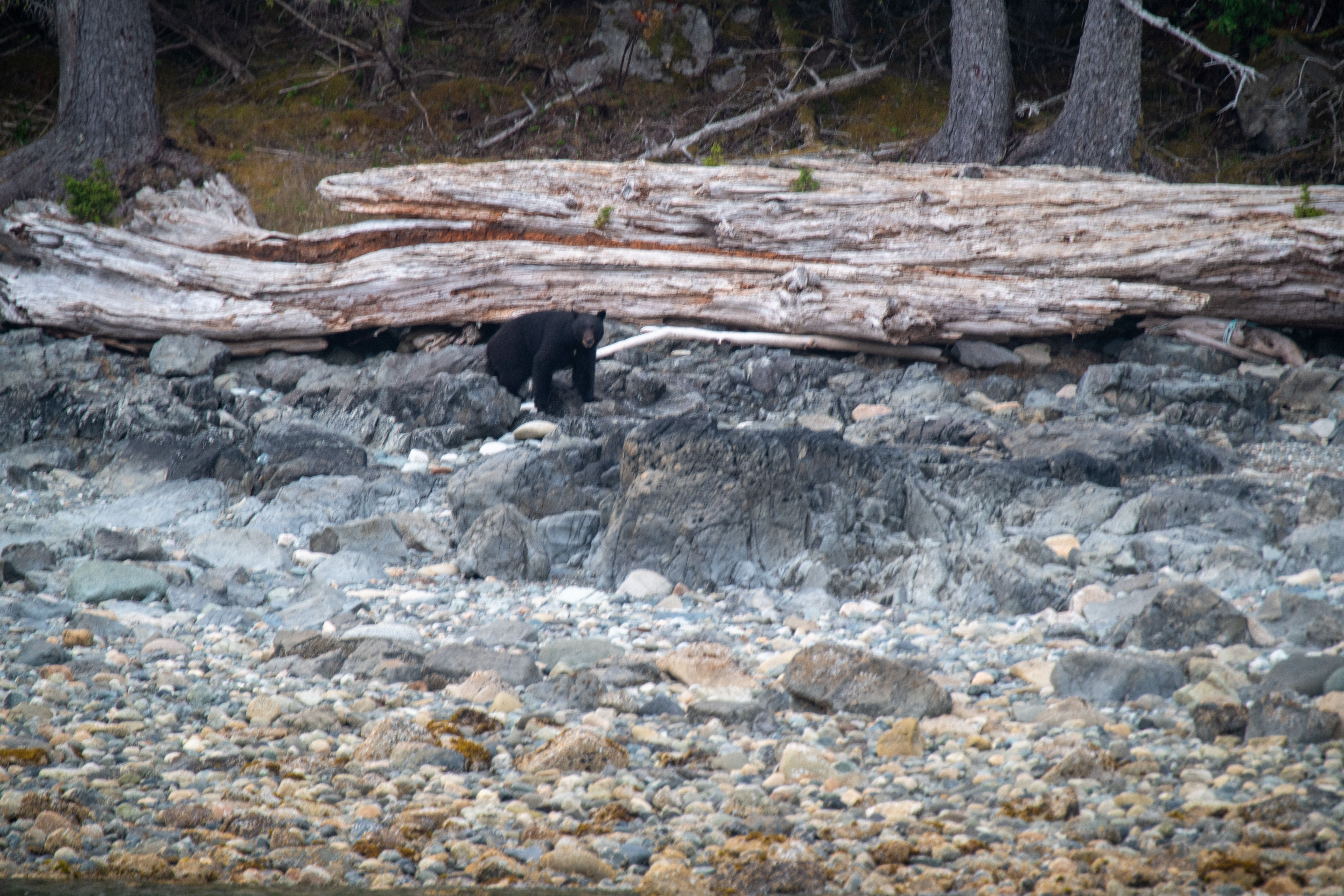 John Harvey Photo > John's Overnight Page > Haida Gwaii > Graham Island > Tanu > Black Bear Coming Down Rocks