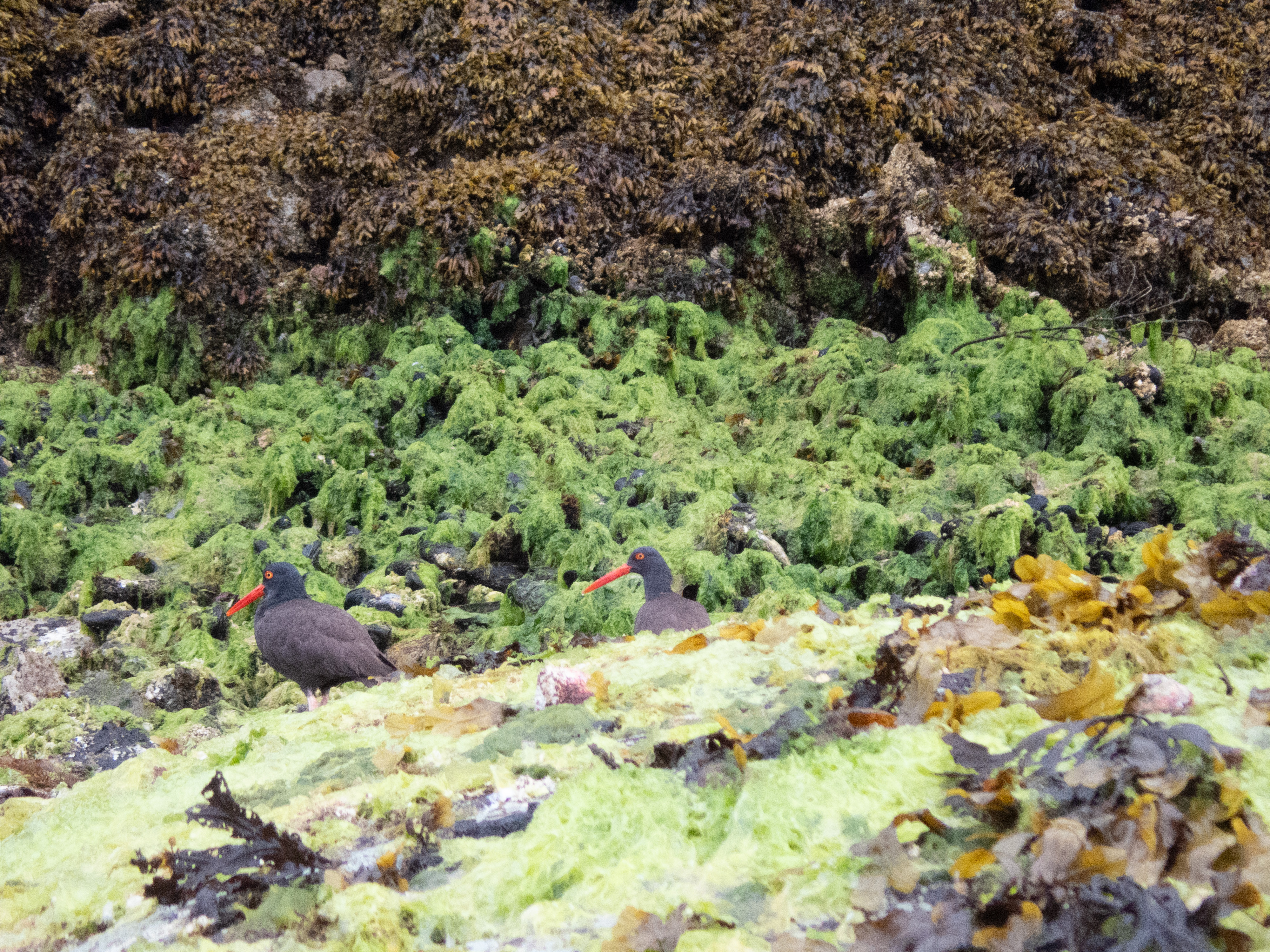 John Harvey Photo > John's Overnight Page > Haida Gwaii > Tanu > Oyster Catchers On Kelp Covered Rocks