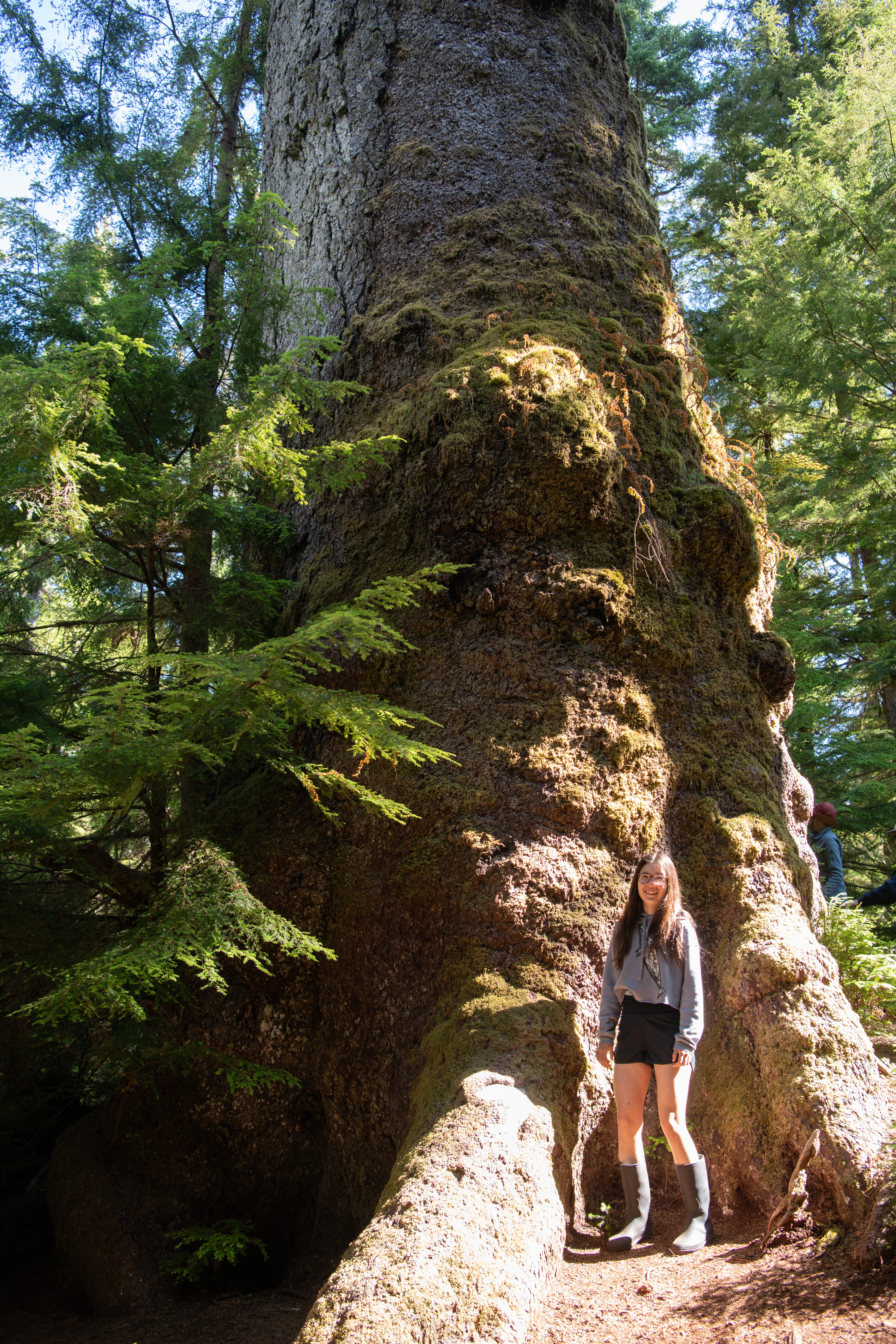 John Harvey Photo > Haida Gwaii > Windy Bay > Nara With Giant Spruce Tree