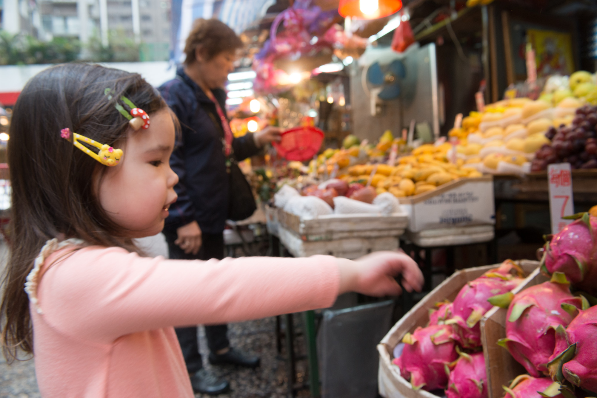 John Harvey Photo > Trips out of the Country > Hong Kong 8 > Nara Pointing Out Dragon Fruit