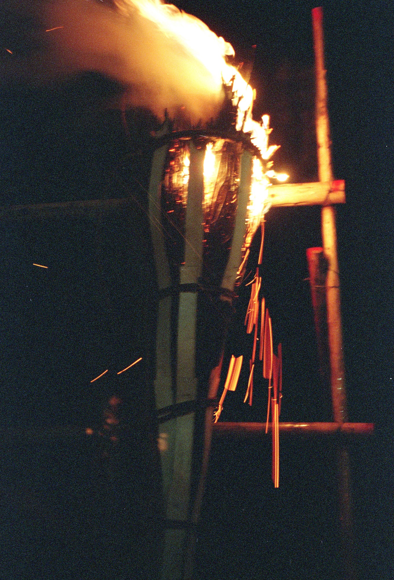 John Harvey Photo > Trips out of the Country > A Fourth Trip to Japan > Kyoto > Festivals in Kyoto > Sparks Coming Off Torch