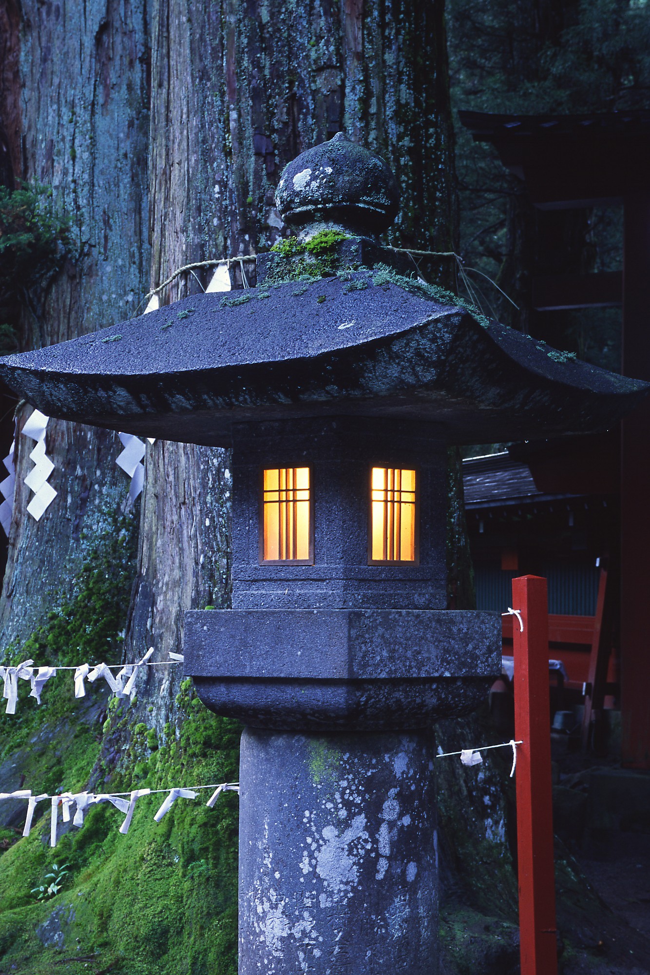 John Harvey Photo > Trips out of the Country > A Second Trip to Japan > Nikko > Lantern In Front Of Kano Sugi