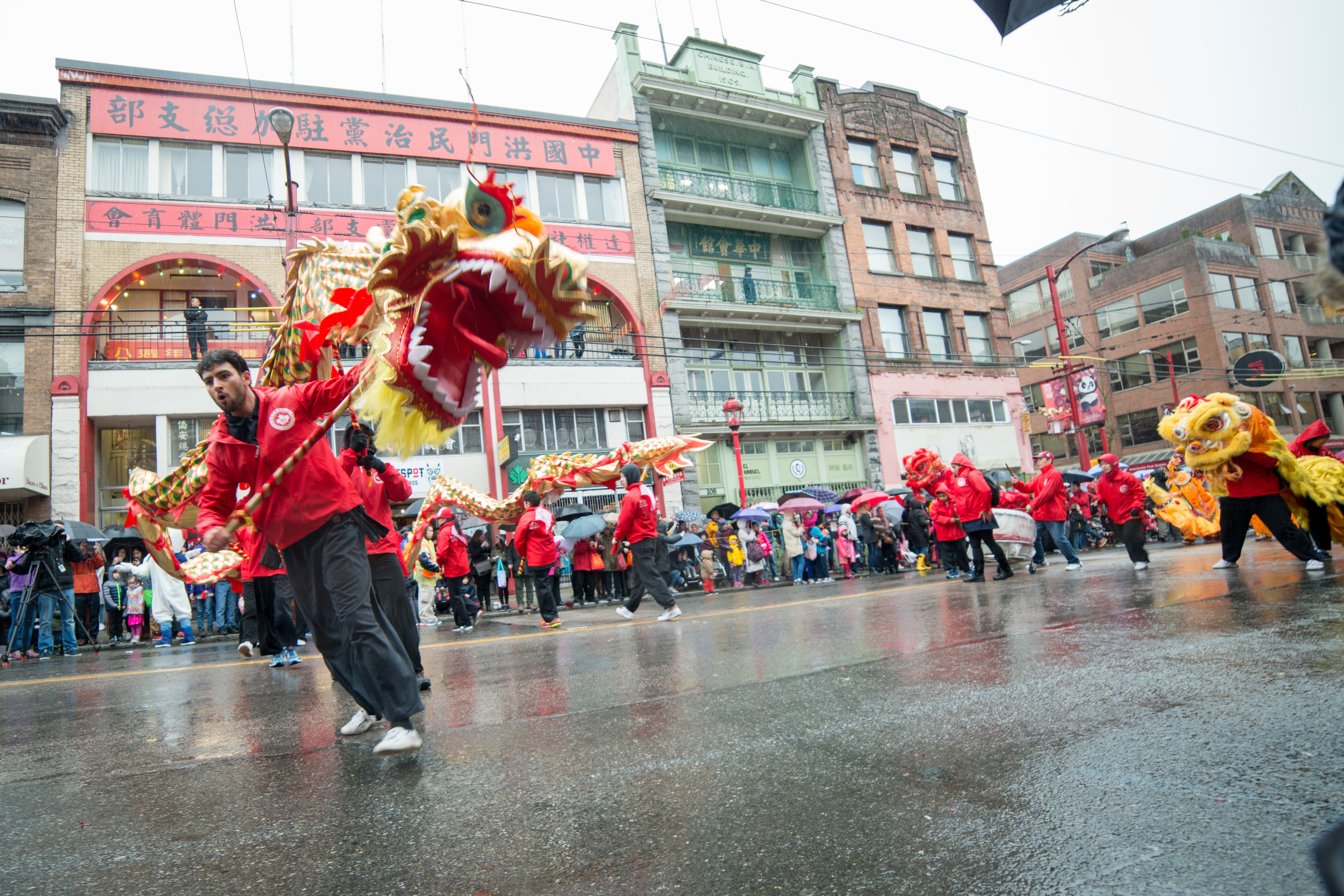 | Tag: | parade, rain, dragon, Vancouver Chinatown, wet road |