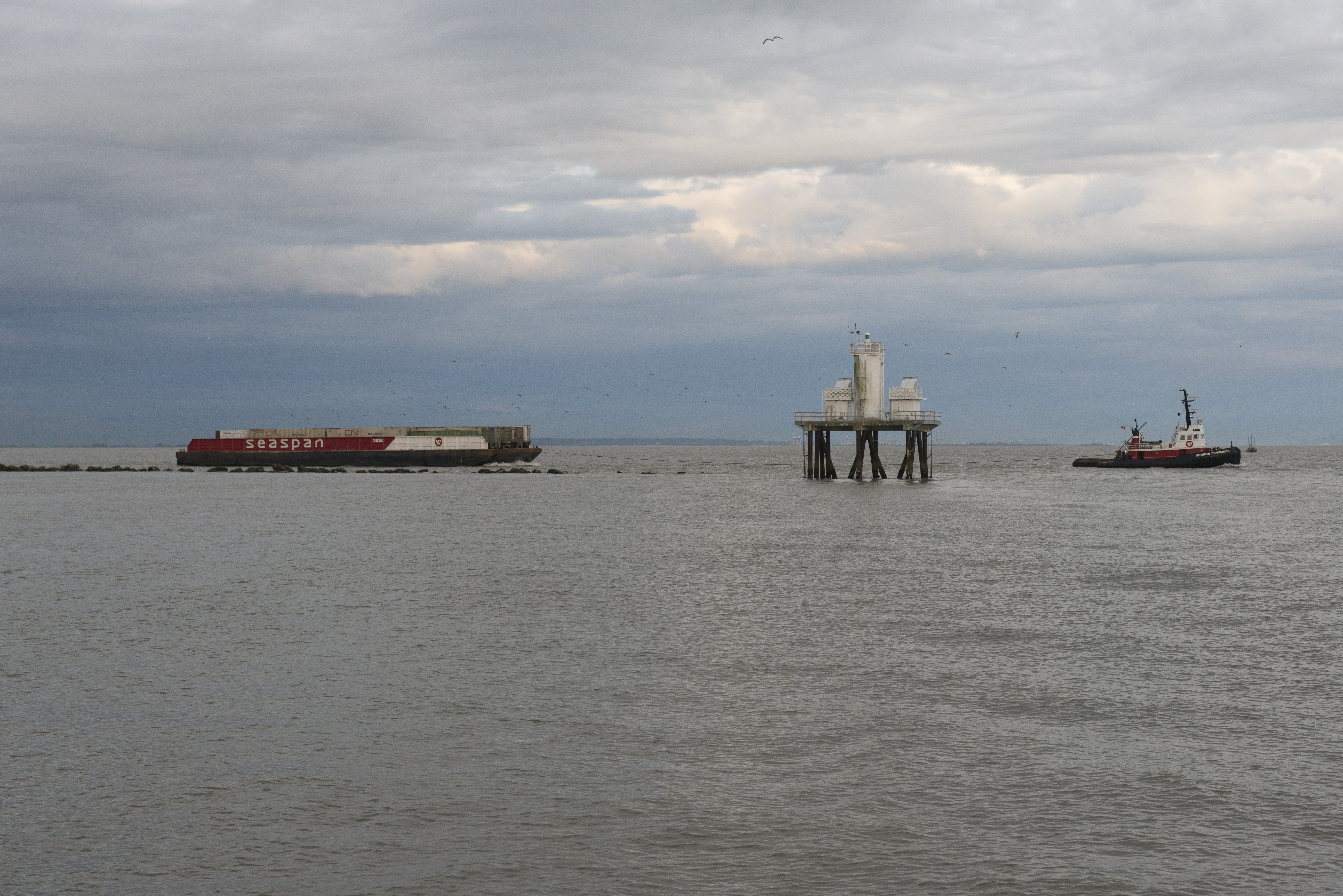 John Harvey Photo > Blogs for 2025 to 2005 > April 2016 > Sandheads Lighhouse With Barge And Tugboat