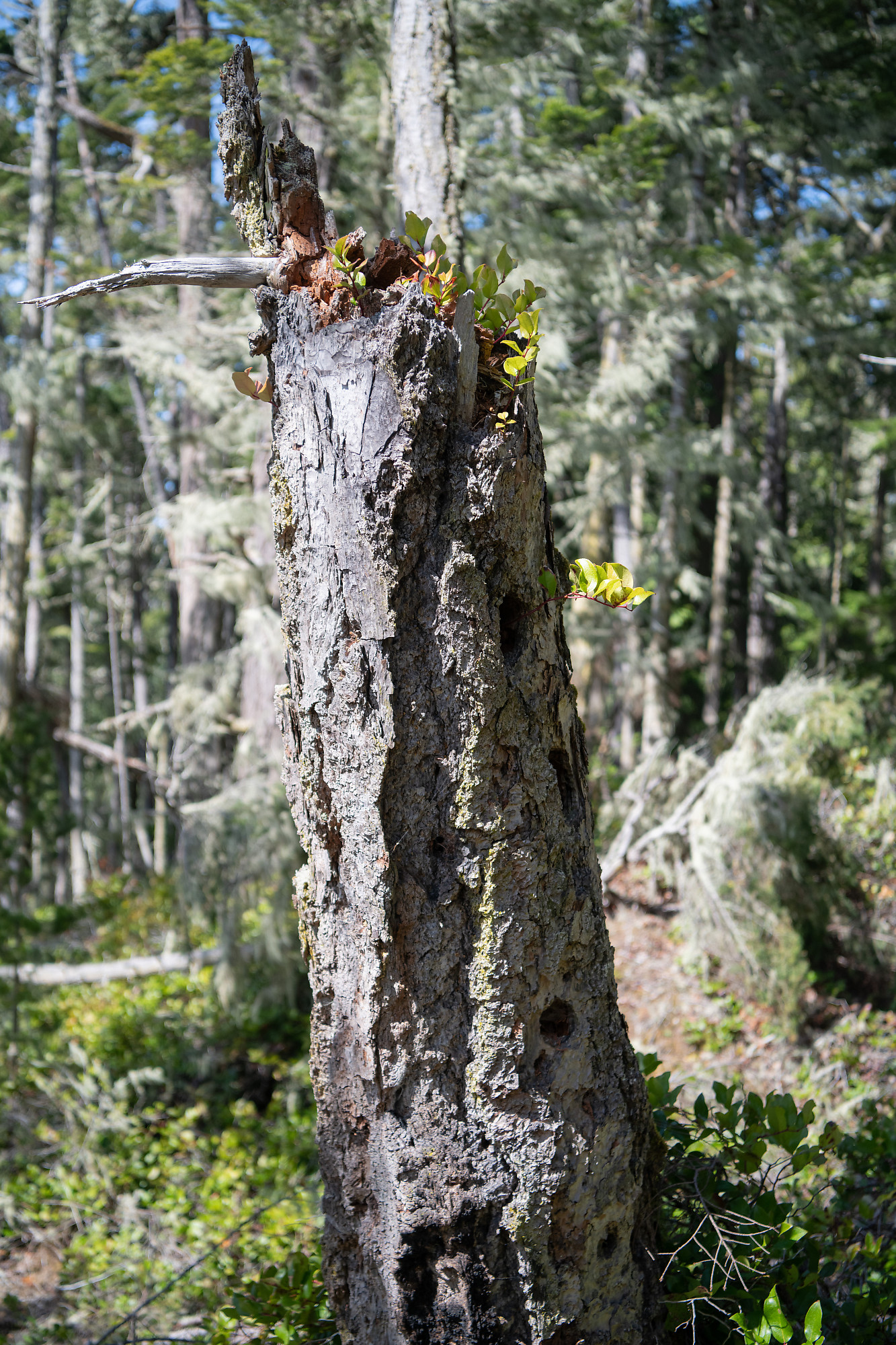 Salal Growing From Woodpecker Hollows