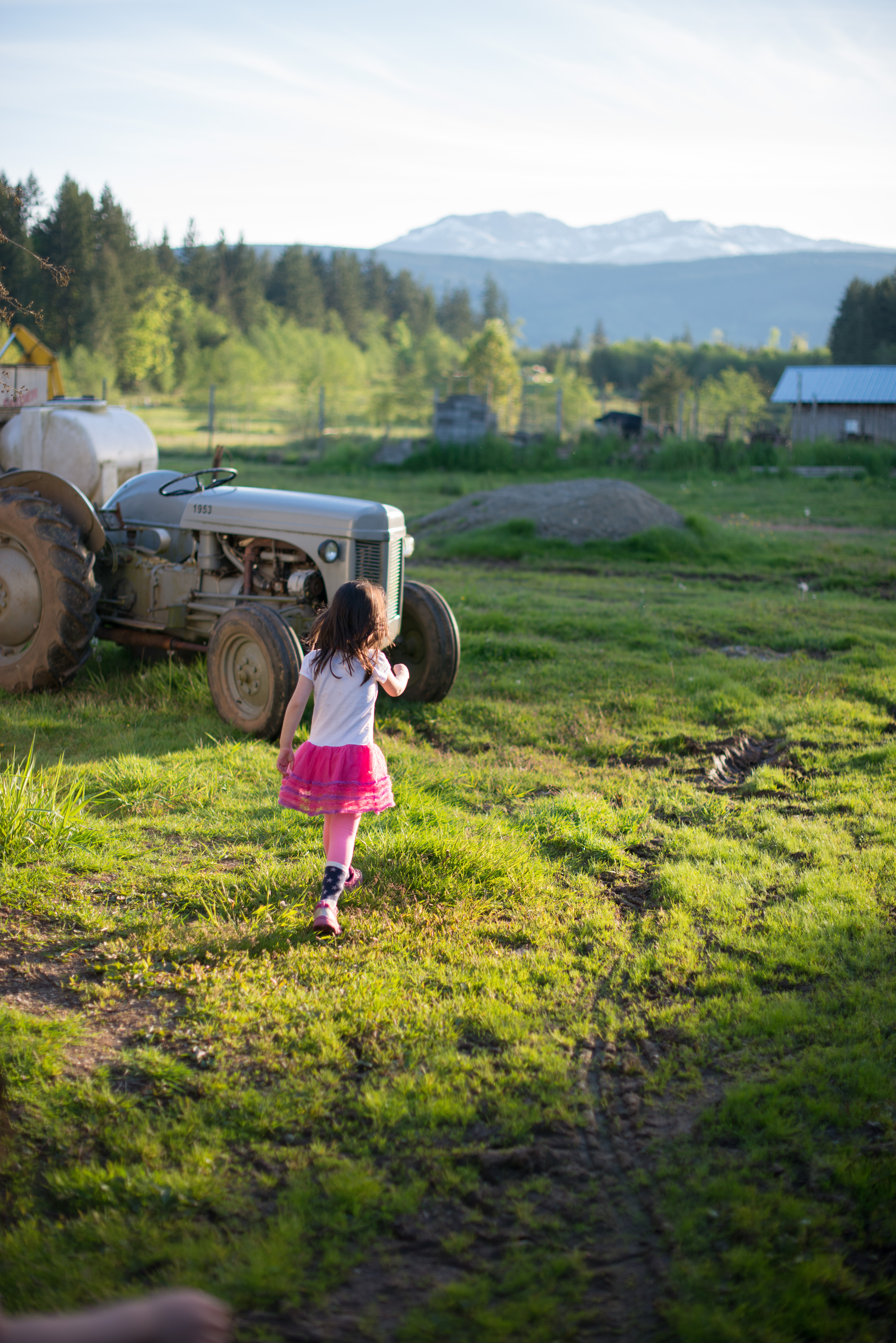 Claira Walking Past Tractor