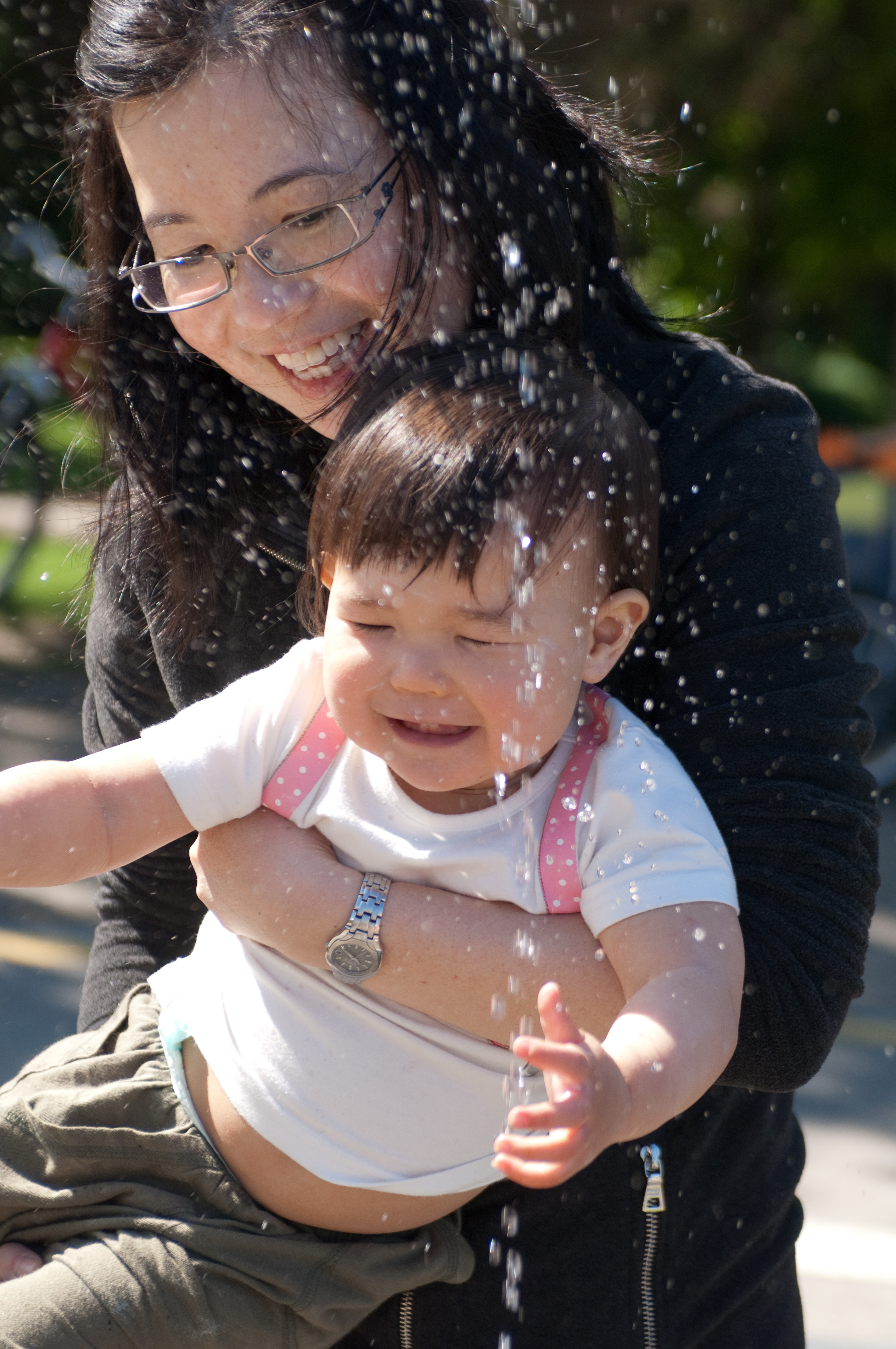 Helen Holding Nara Near Fountain