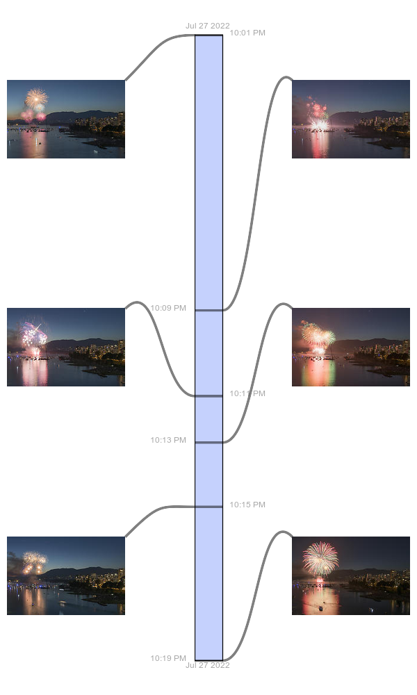 Three Colours At Start Of Fireworks Pink And Blue Inside Curtain Top And Middle Fireworks Ground Streaks Ground Smoke Green And Red Fireworks Overlapping Colors At End