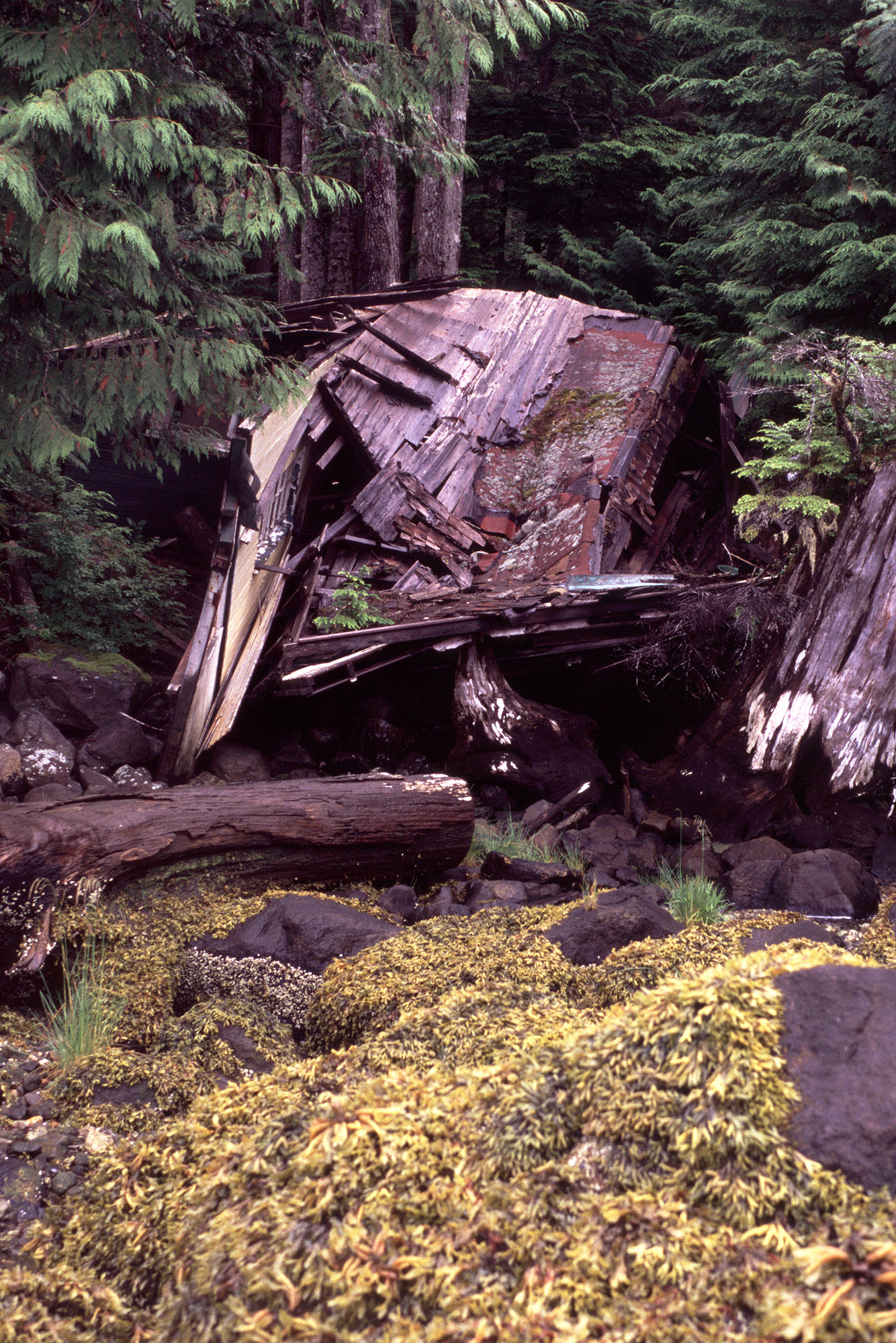 John Harvey Photo > Mid Coast of BC on the Curve of Time > Codville Lagoon to Jenny Inlet via Ocean Falls > Collapsed Cottage