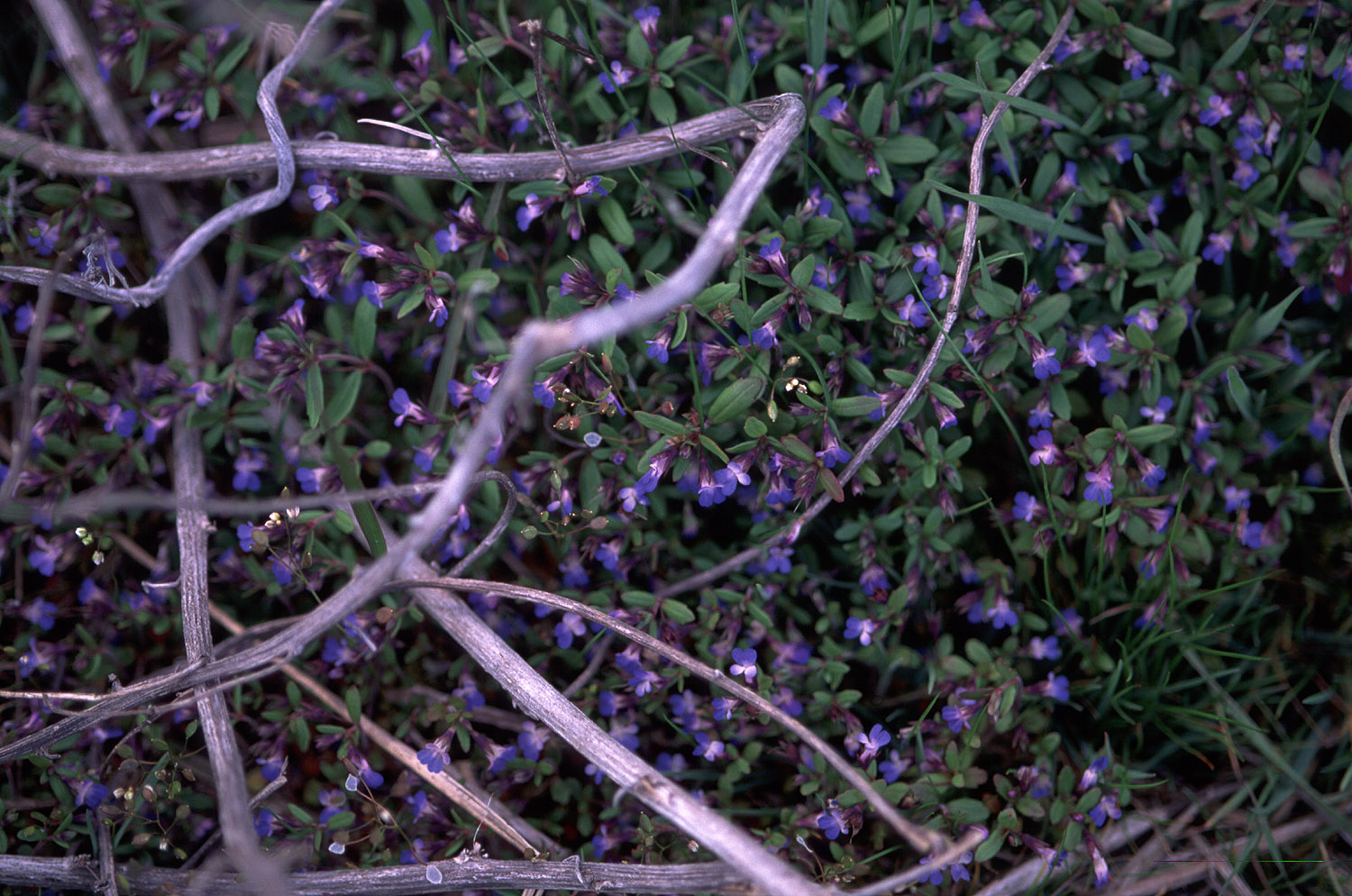 I like this combination of old, harsh, dead wood with soft new flowers.