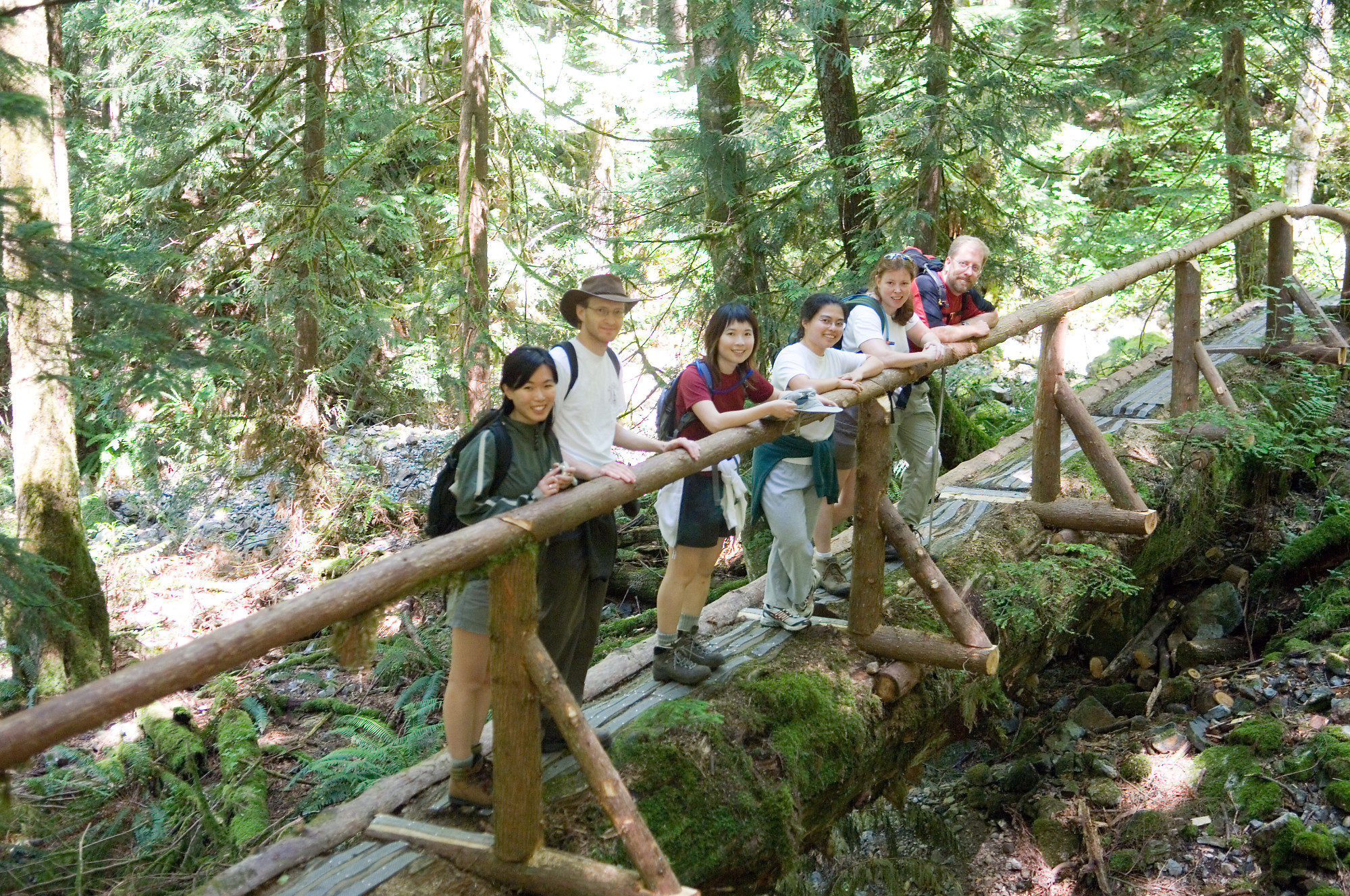 I like these log bridges. They give you sense of just how strong trees really are - they can rot for 10 years and still be strong enough to support lots of people.