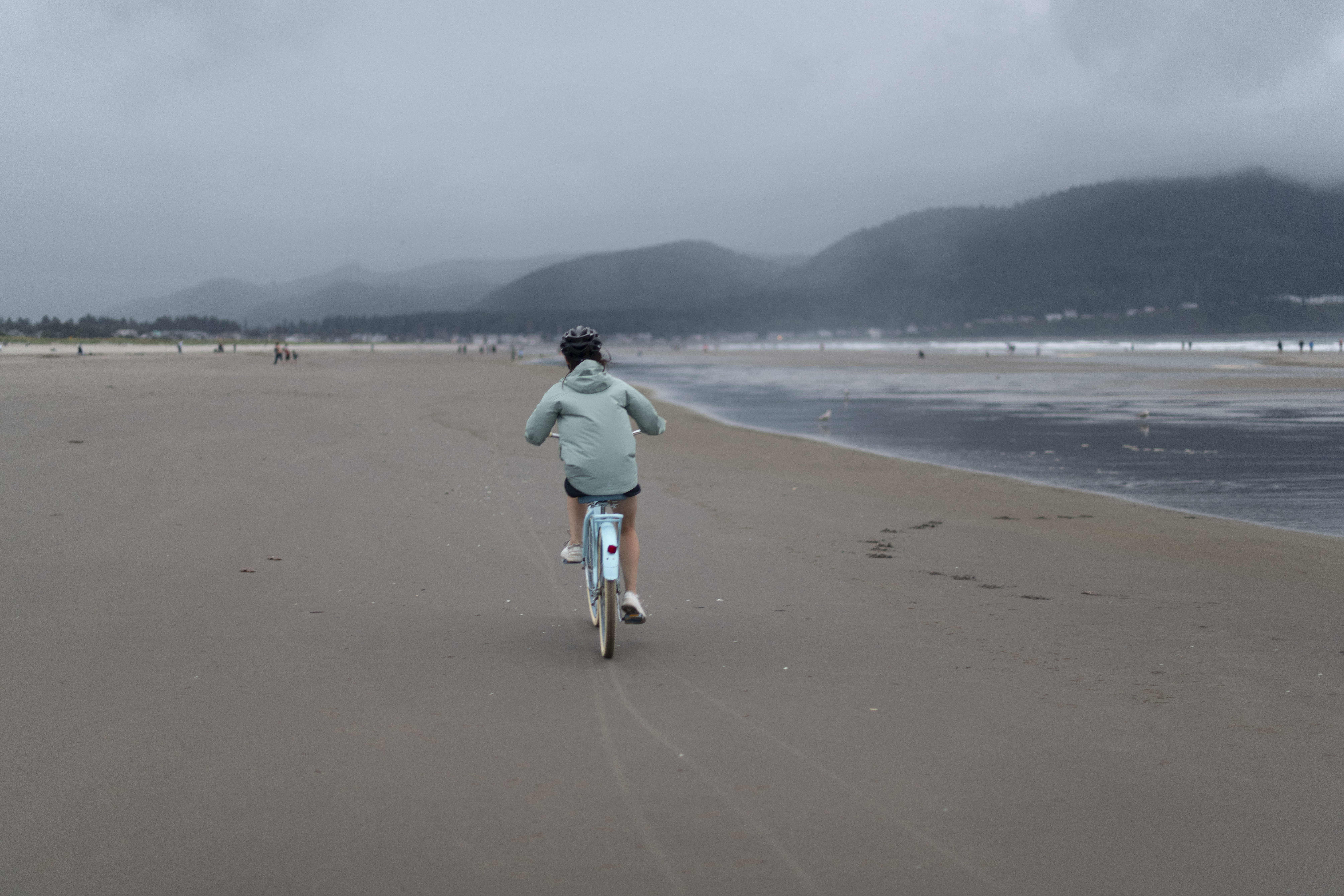 John Harvey Photo > John's Overnight Page > Oregon Coast Road Trip > North Oregon Coast > Nara Biking Into Storm