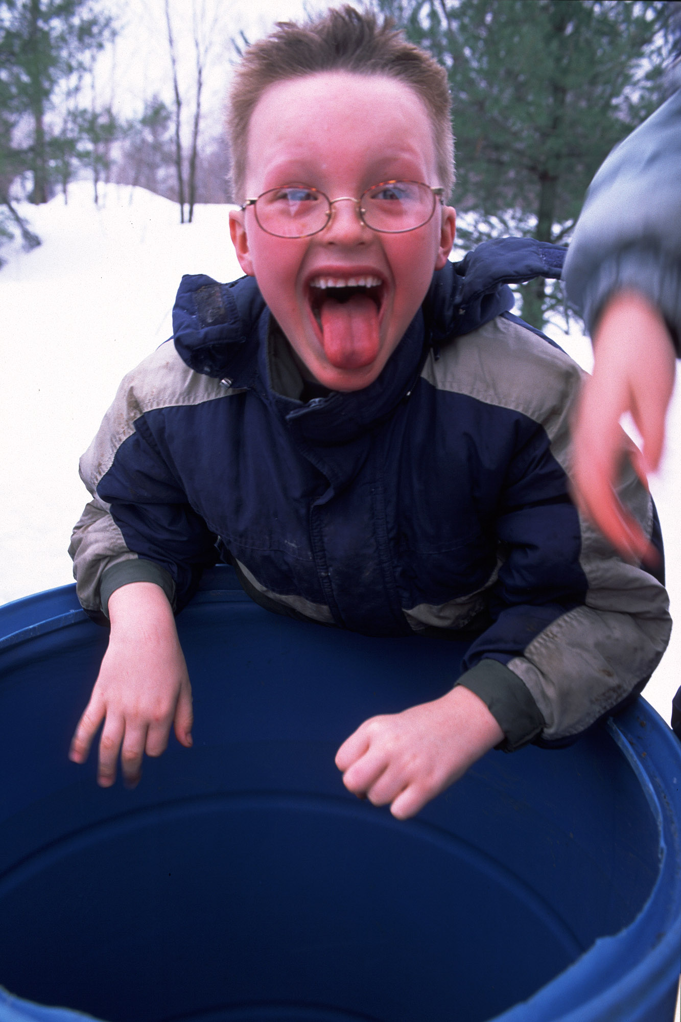 Kyle (known as the sap sucker) has just sampled this years sap. It seems