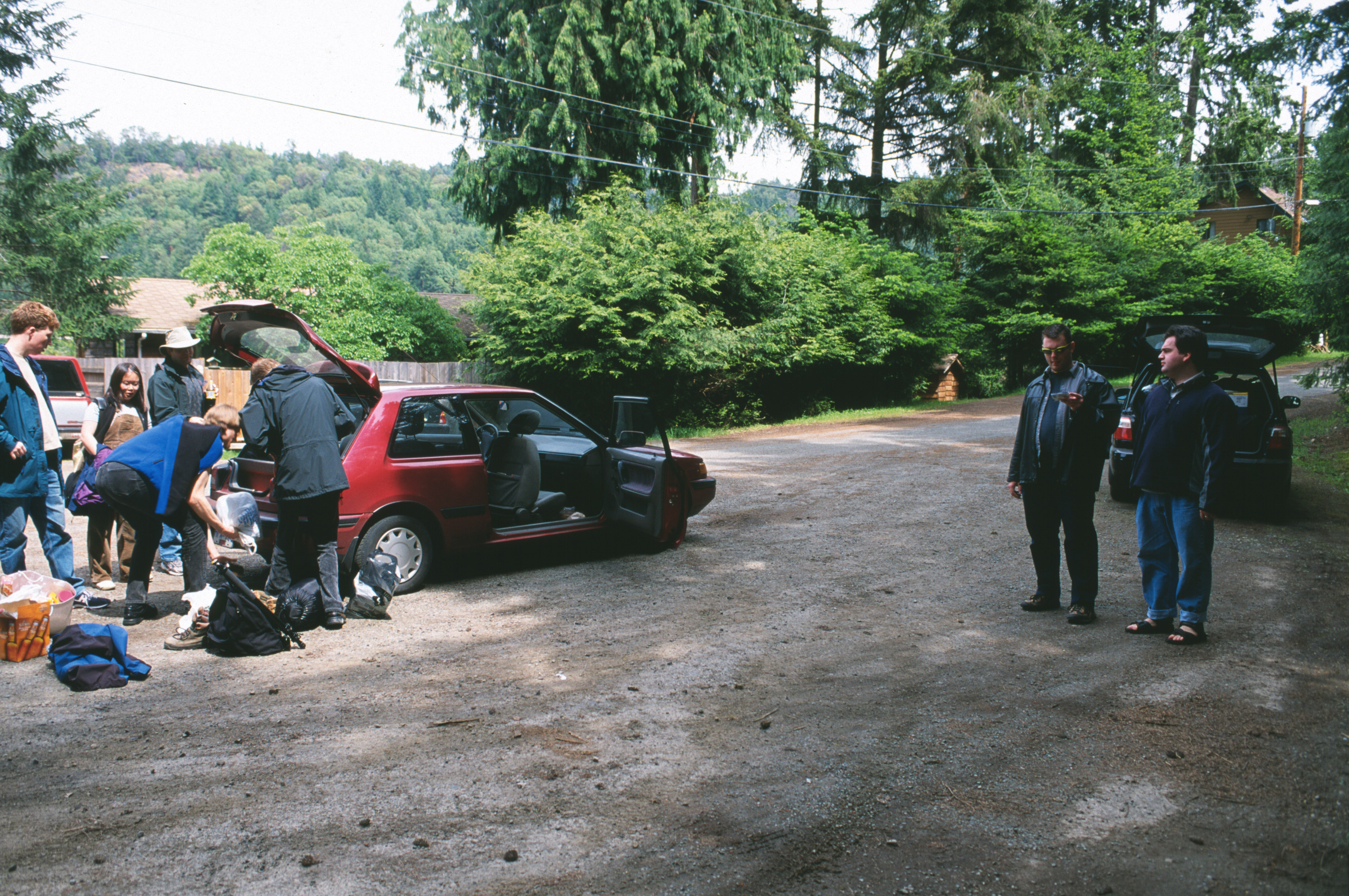 Hatchbacks are good! We managed to get 9 people into these two cars here and with a bit of work, we got all 9 people in to go home.