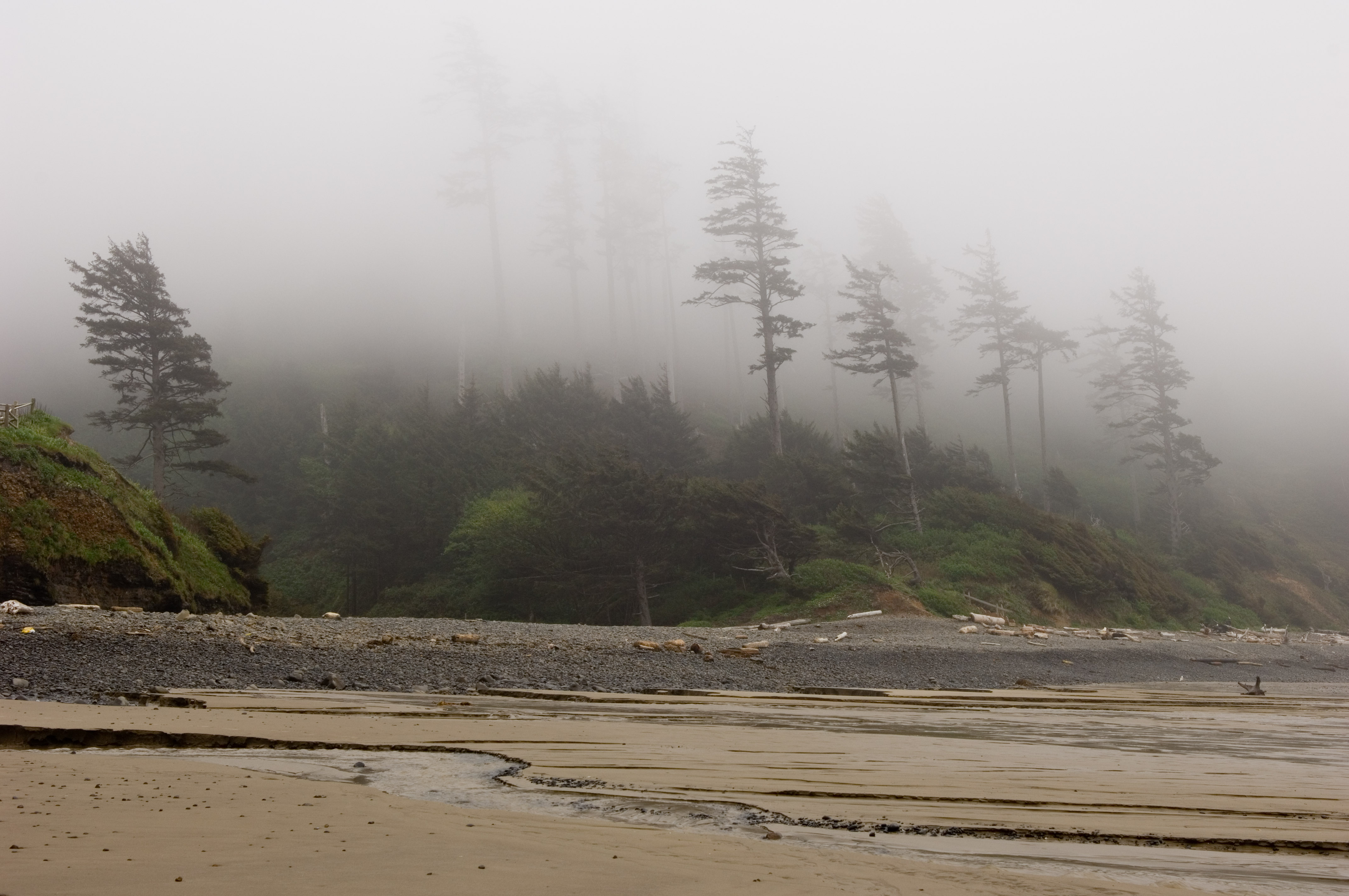John Harvey Photo > Blogs for 2025 to 2005 > Seaside Oregon > Foggy Trees And Sandy Beach