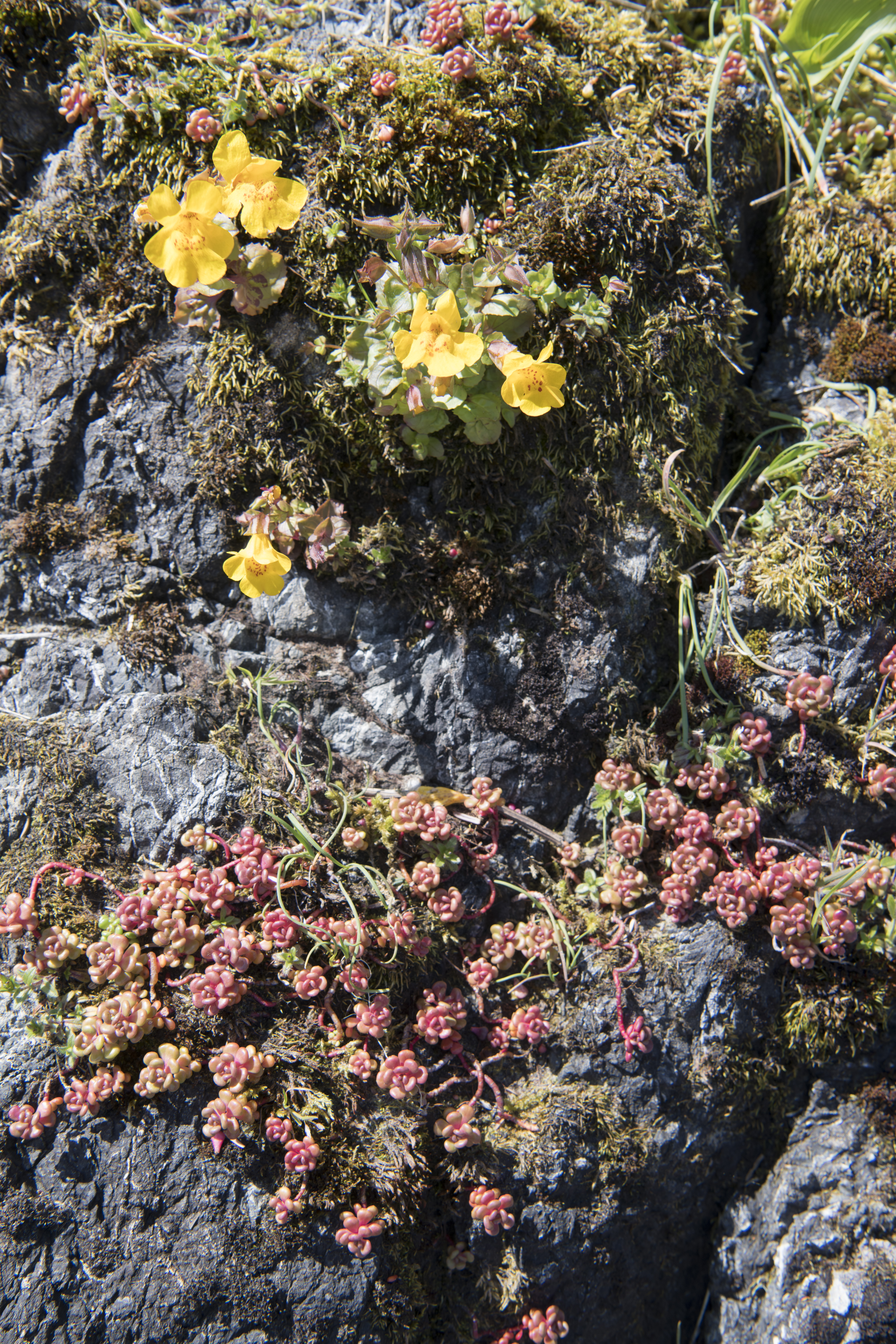 | Sedum oreganum (Oregon Stonecrop), Mimulus guttatus (common monkey-flower, yellow monkey-flower) |