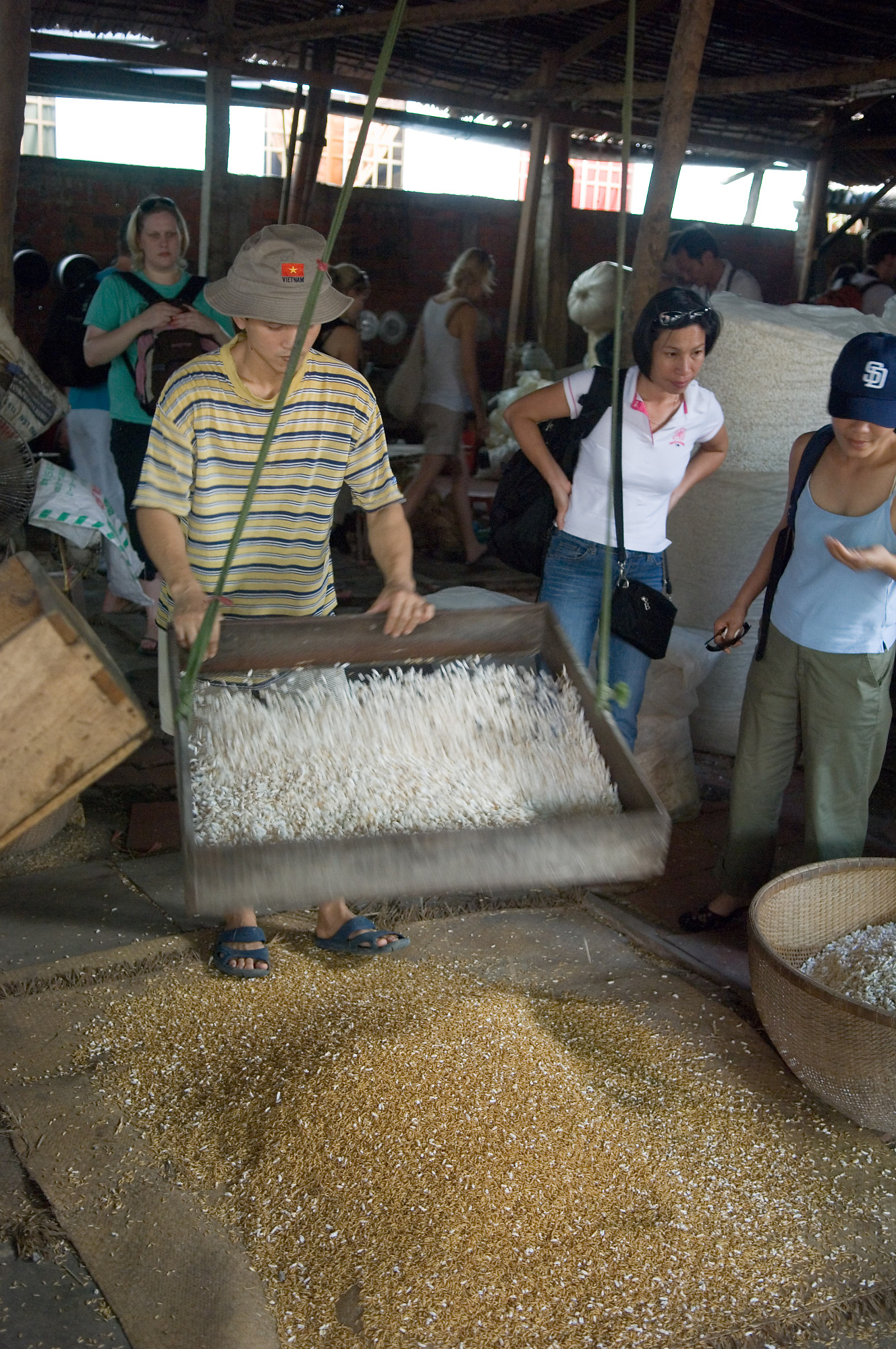 John Harvey Photo > Trips out of the Country > Vietnam > Mekong Delta > Separating Husk From Puffed Rice