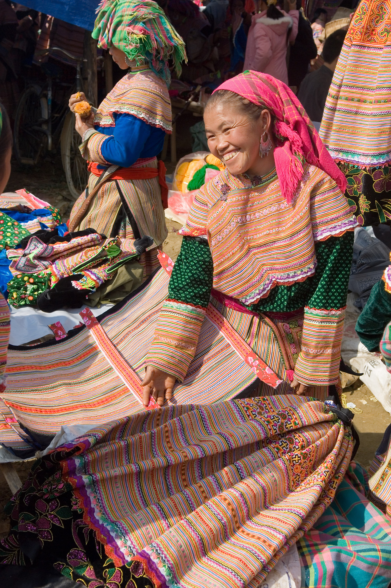 John Harvey Photo > Trips out of the Country > Vietnam > Sapa And Bac Ha > Trading Colorful Fabric